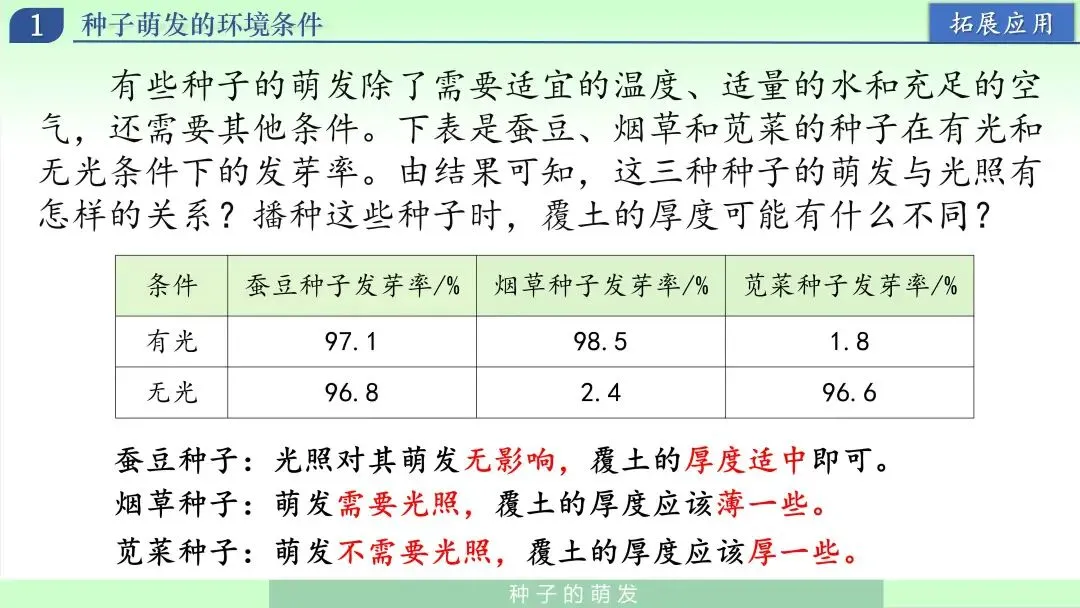 关注公众号,在微信公众号后台发送【种子的萌发-七年级生物下册第三单元第一章第一节】,即可免费获得推文中的课件。