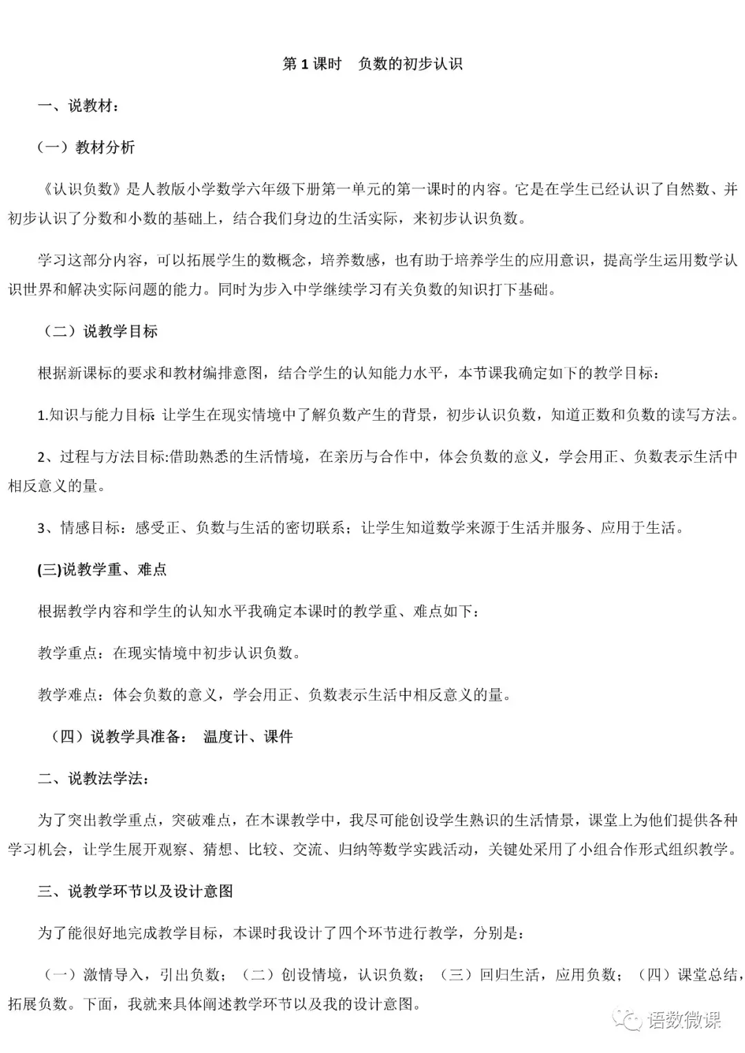 4人教版数学1-6年级下册说课稿(以6年级为例)