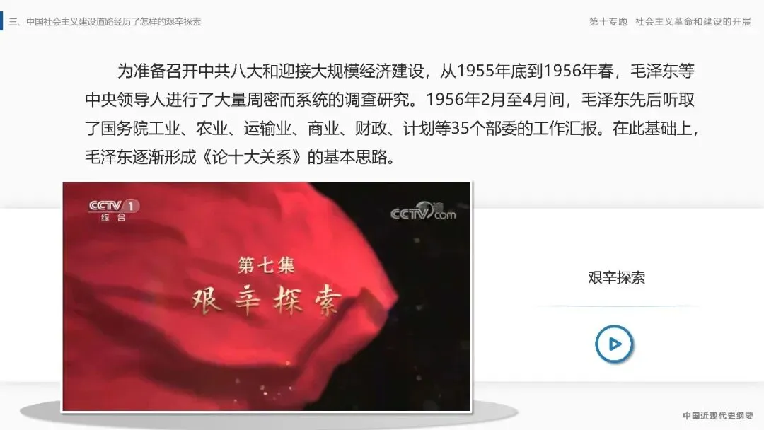史纲专题十社会主义革命和建设的开展(案例持续更新中,课件+稿子+视频),共3.0万字,117页PPt。工作室有新思想、共同体概论、国家安全教育、毛中特、马原、史纲、德法等逐字稿和说课稿,可定制比赛课件PPt,论文、课题、微课等内容。需要完整版,可以添加微信qingjiaosizheng999部分案例展示: