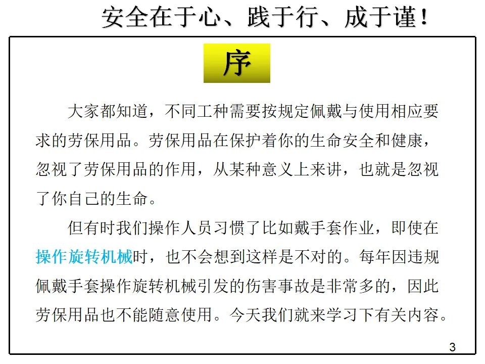 当前位置:首页>课件>【PPT课件】请注意,操作旋转机械禁止佩戴手套68页
