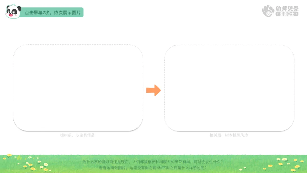 ——为什么不论是以前还是现在,人们都提倡要种树呢?如果没有树,可能会发生什么?看看这两张图片,这里没有树之前/种下树之后是什么样子的呢?