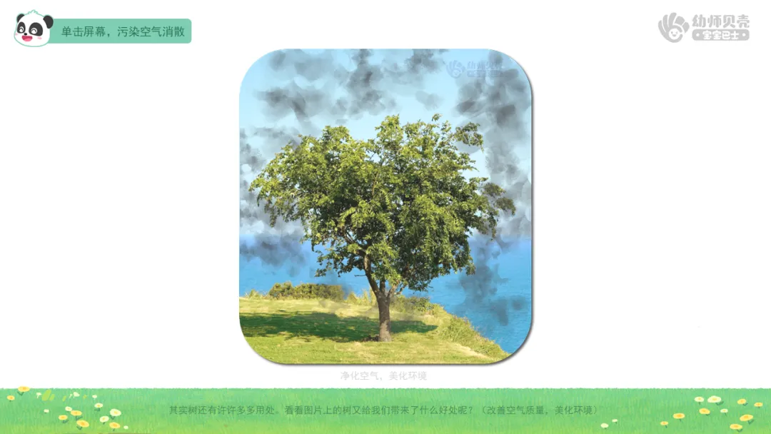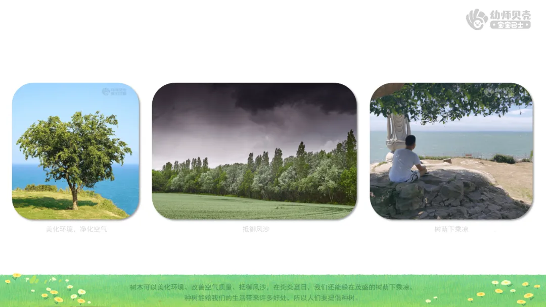 ——谁来说一说,你发现树能给我们带来什么好处?(让环境变美、能抵御风沙)