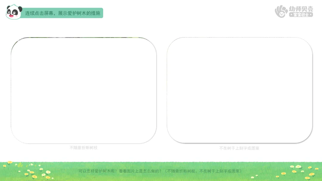 2.出示组图“爱护树木”,引导幼儿了解爱护树木的方法。