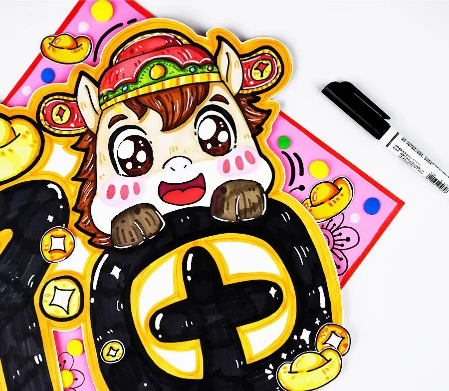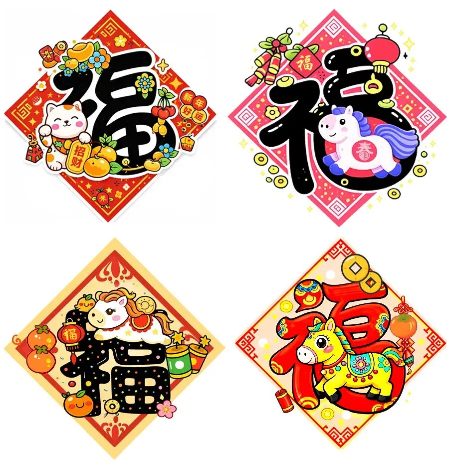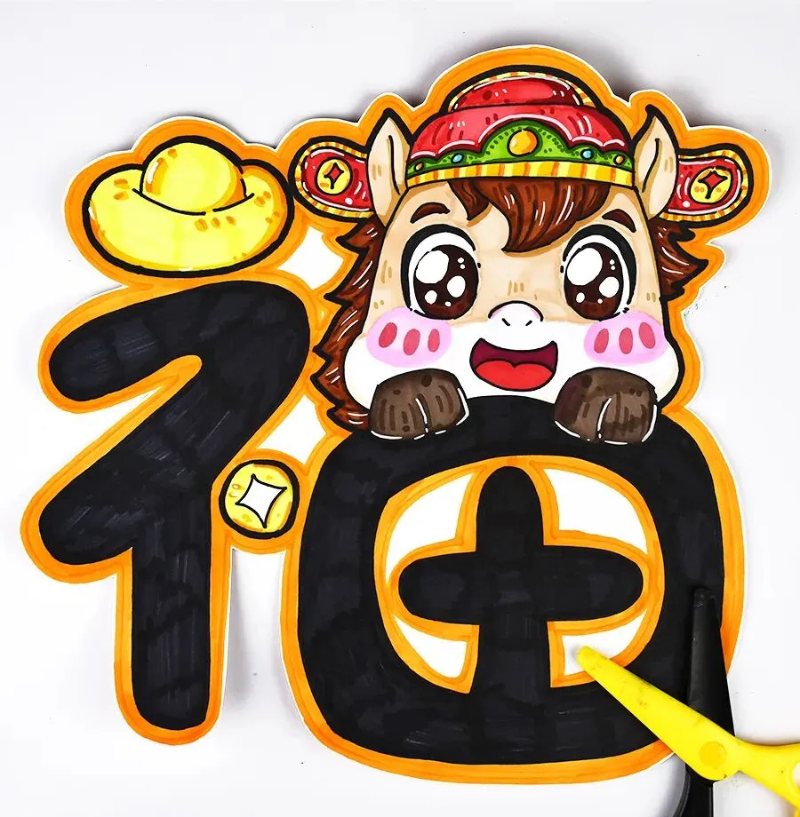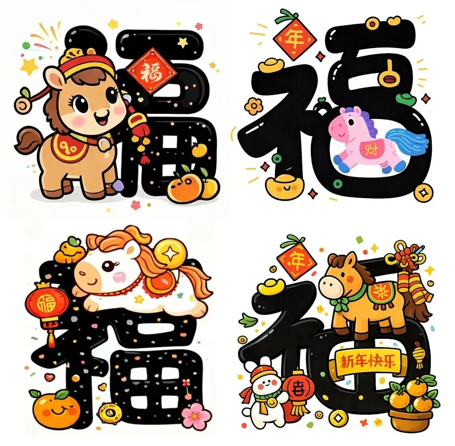 “福”字其实是一个非常有意思的字,它不仅可以用笔画表现,还可以结合一些有趣的图案,变得更加丰富多彩。我们把这种将文字与图案结合的创作方式叫做“字画合一”或者“创意文字”。比如,你可以把“福”字上的“点”变成金元宝,或者把“田”字变成奔跑的马。这样的设计,不仅能让福字更有趣,还能把更多美好的寓意和祝福带入到每个创作中。