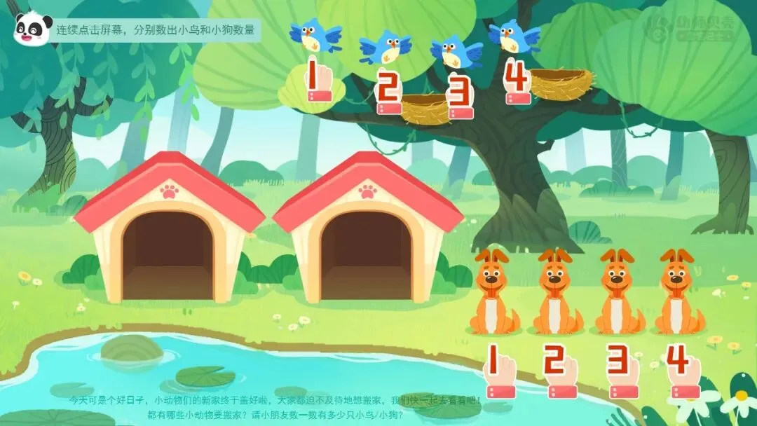 ——都有哪些小动物要搬家?请小朋友数一数有多少只小鸟/小狗?