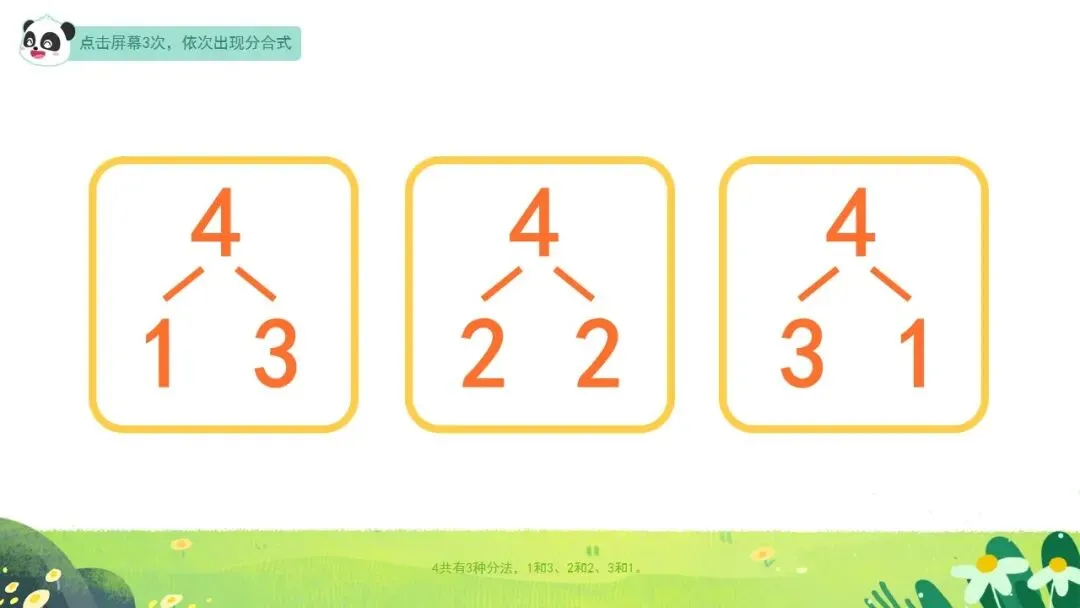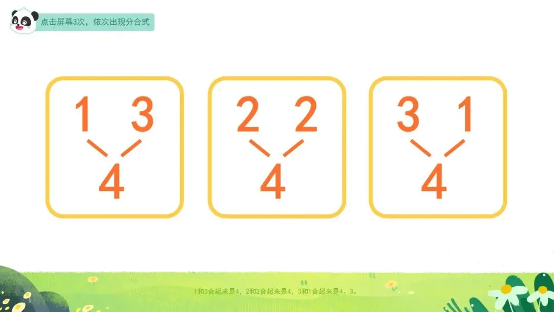 小结:1和3合起来是4,2和2合起来是4,3和1合起来是4。