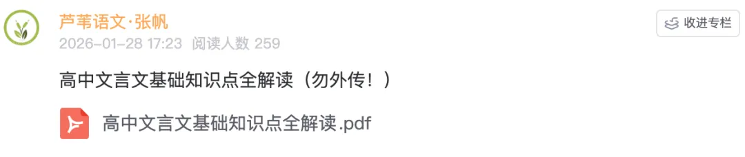 【星主资质】张帆老师,已出版教辅:《21 天搞定高中文言文 500 词》、《21 天搞定初中文言文 300 词》、《小升初教程》(语文),芦苇语文公众号主创,一线教学经验 17 年,网络教学经验 8 年。加入“知识星球”可共享星主全部备课资料,与星主共同成长。