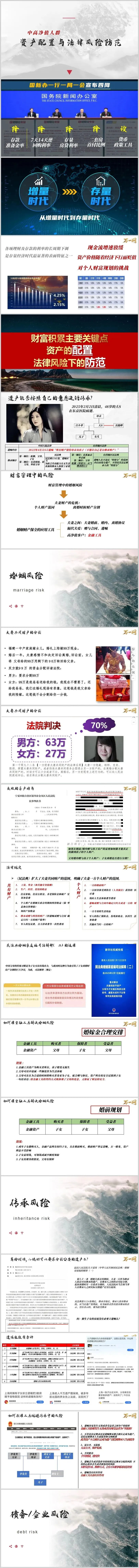 正如财富管理领域的箴言:"重要的不是预测未来,而是提前规划,当风险来临时可以从容应对。"在存量经济时代,利率下行与资产贬值已不可逆转,而婚姻变动、代际传承、企业债务等法律风险却呈加剧态势。高净值客户亟需转变"重收益、轻架构"的传统思维,将保险等金融工具纳入资产配置的核心圈层,通过法律架构设计实现婚姻财产保全、精准财富传承及债务风险隔离。唯有如此,方能在经济周期的波动中守护家族财富的安全与永续。
