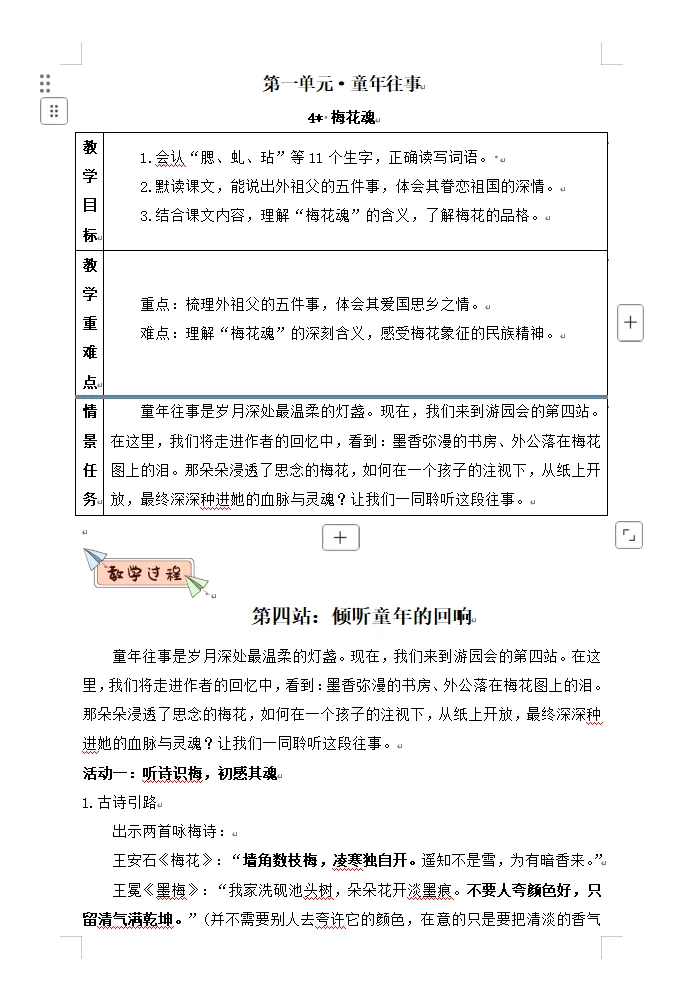 部编版小学语文五下第一单元《梅花魂》课件+教学设计
