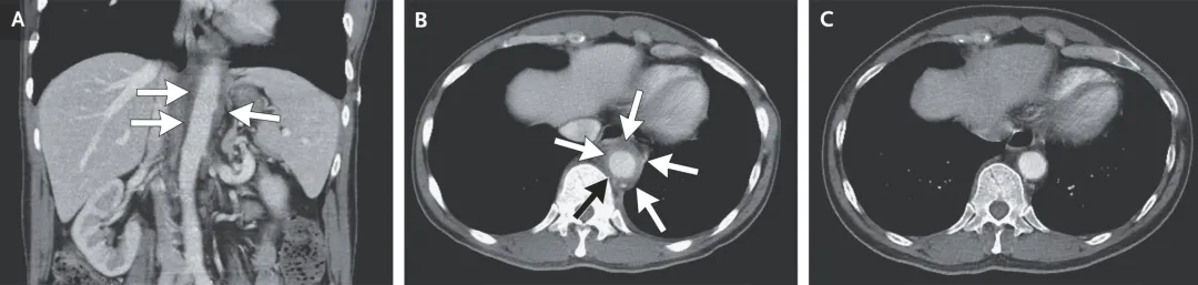 这种血管炎病例,我们在临床上其实并不少见,为什么别人能发 NEJM?关键在于“Before & After”的完美对照以及“治疗决策”的转折点。