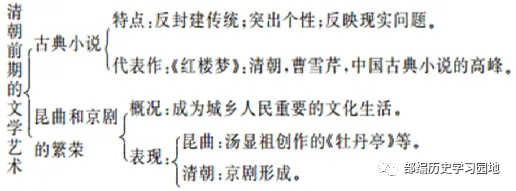1.知识与能力:了解清朝古典小说《红楼梦》的思想艺术特点和造诣;掌握清朝昆曲与京剧艺术的繁荣的基本史实。
