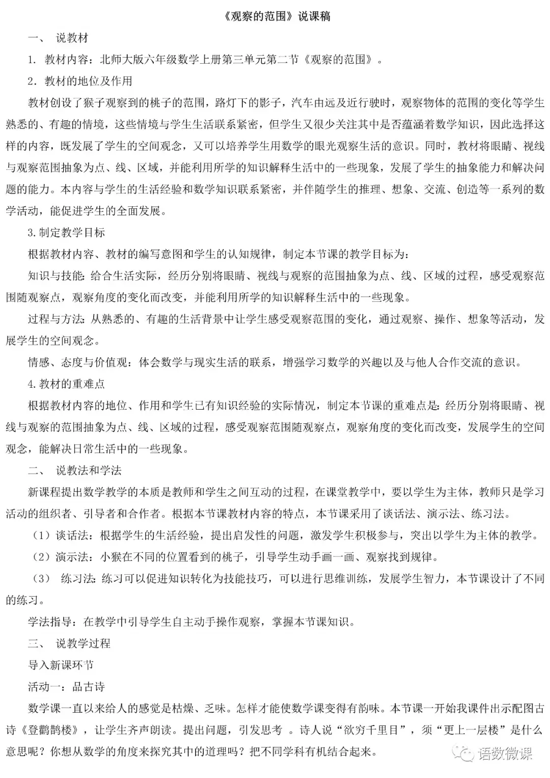 5北师大数学1-6年级下册说课稿(以6年级为例)