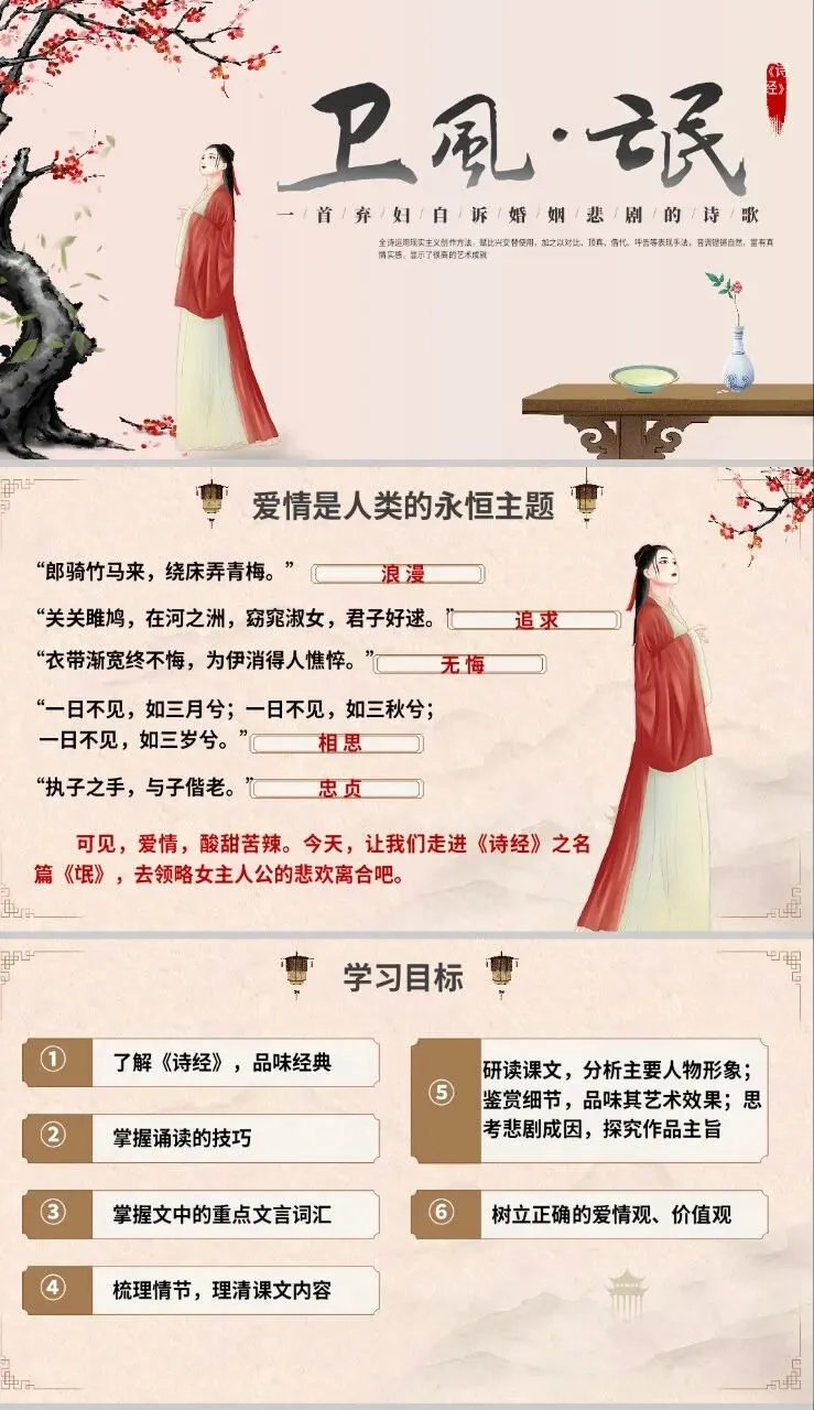 >部编版选择性必修下册1.1《氓》课件(图片较多,私信我发完整)