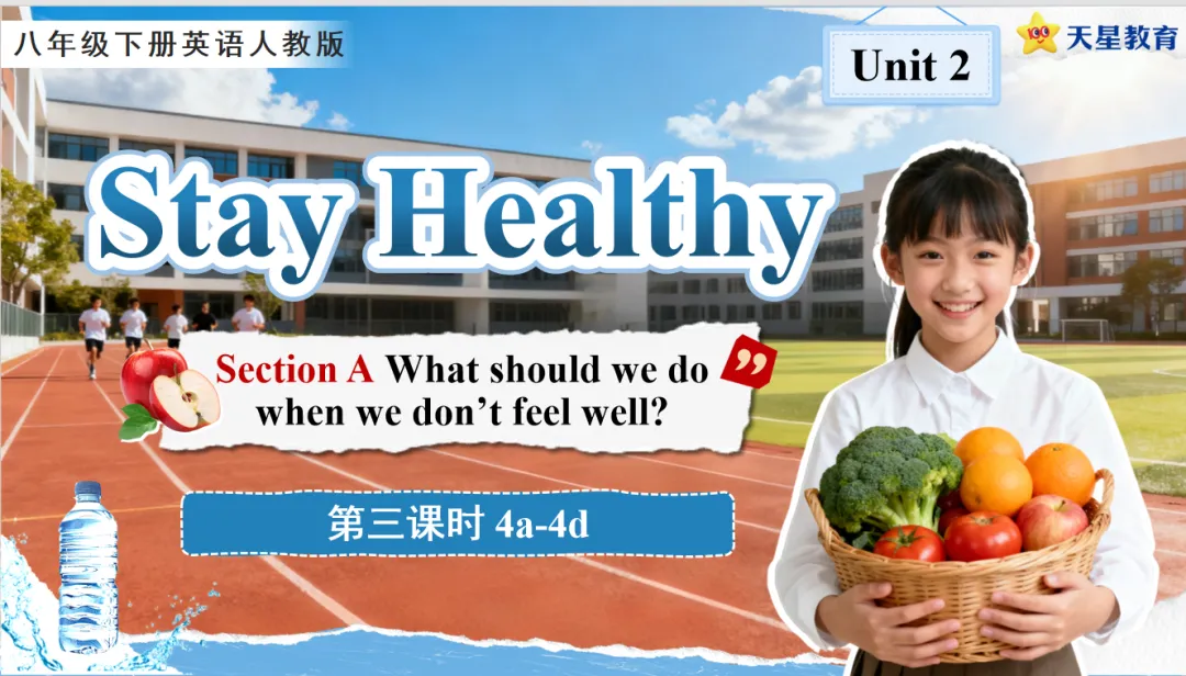 各位初中英语老师看过来!推荐一份超实用的人教版八下英语Unit2第三课时(Section A 4a-4d)课件,围绕“Stay Healthy”主题,轻松帮你搞定40分钟高效课堂!