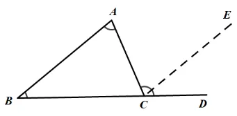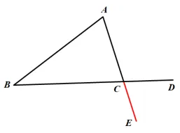 思考:如图,延长 AC 到 E,∠BCE 是不是△ABC 的一个外角?∠DCE 是不是△ABC 的一个外角?