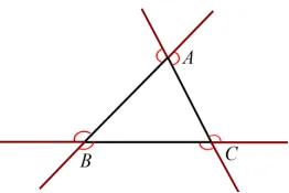 在三角形的每个顶点各取一个外角,这三个外角的和叫作三角形的外角和.