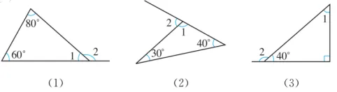 解:(1)∠2=60°+80°=140°,∠1=180°-140°=40°.