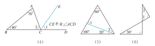 (5)∠1=60°+20°=80°,∠2=180°-60°-80°=40°.