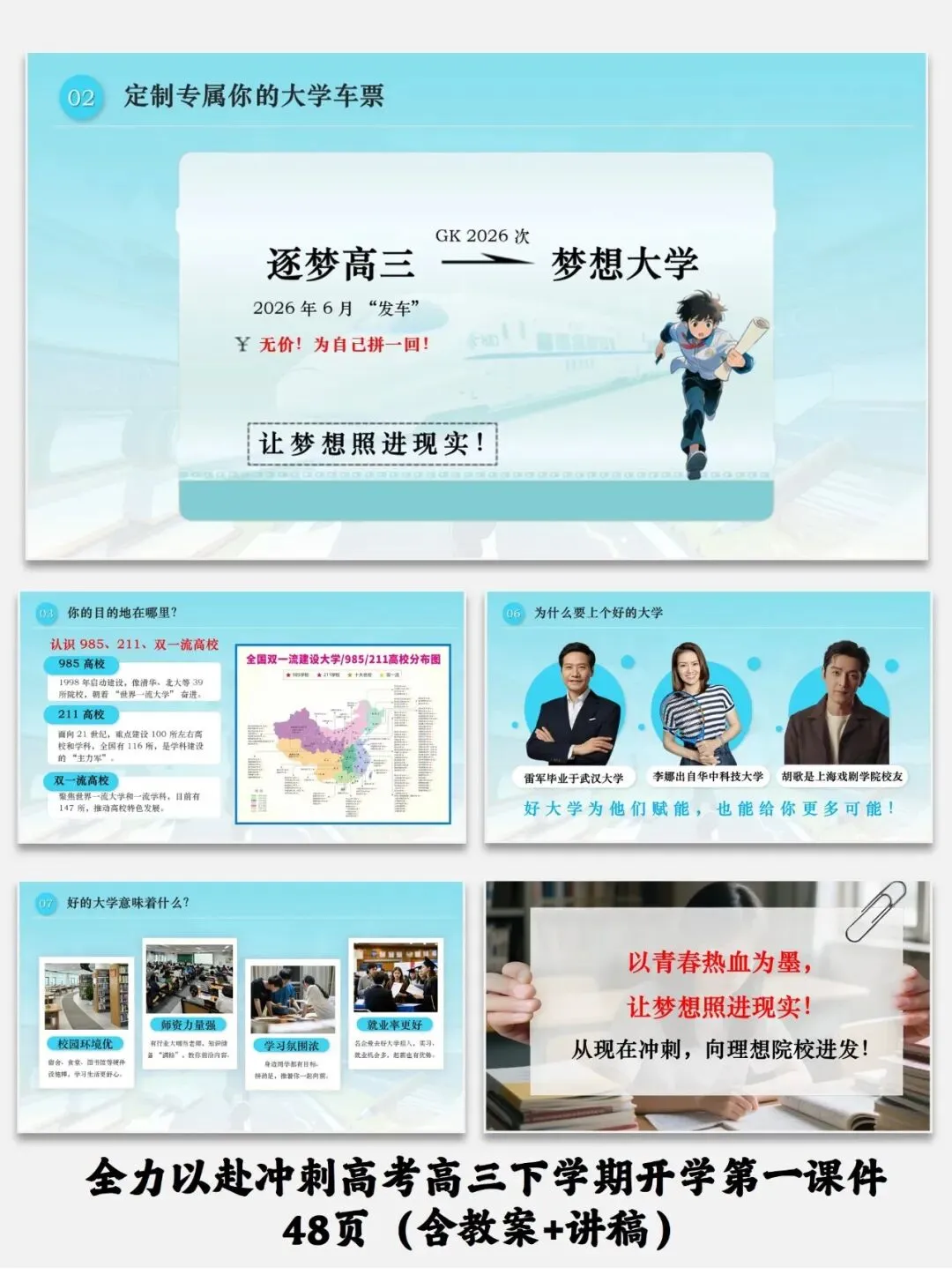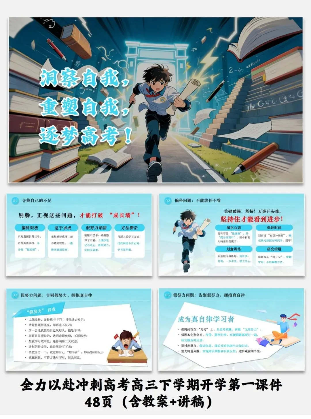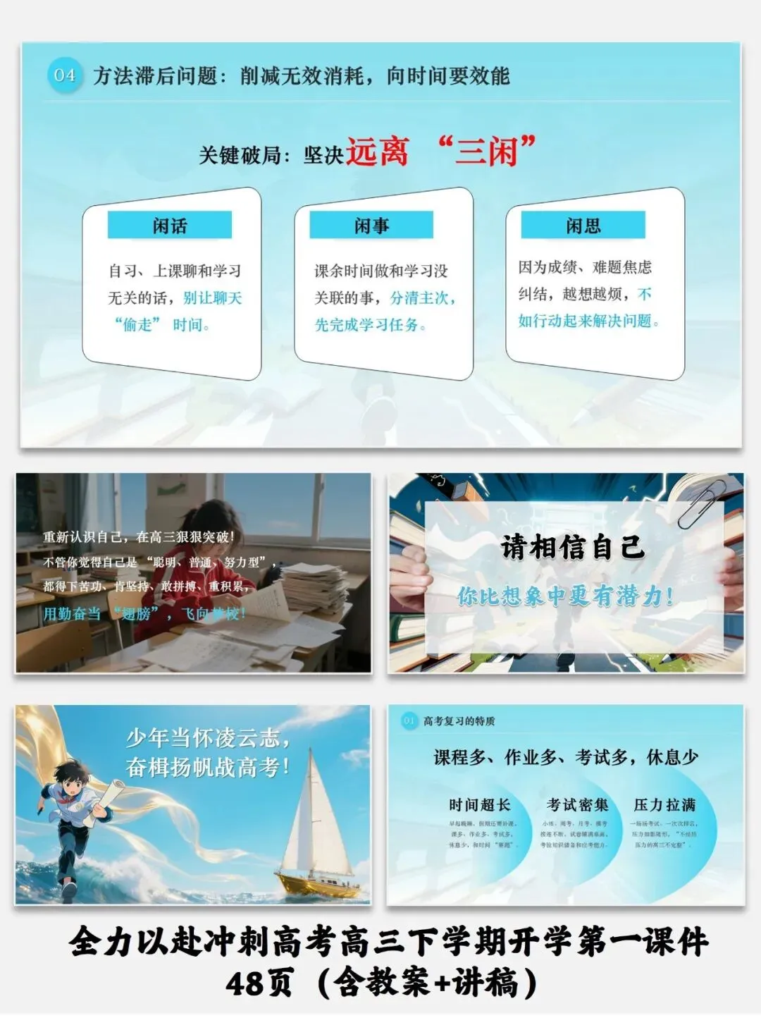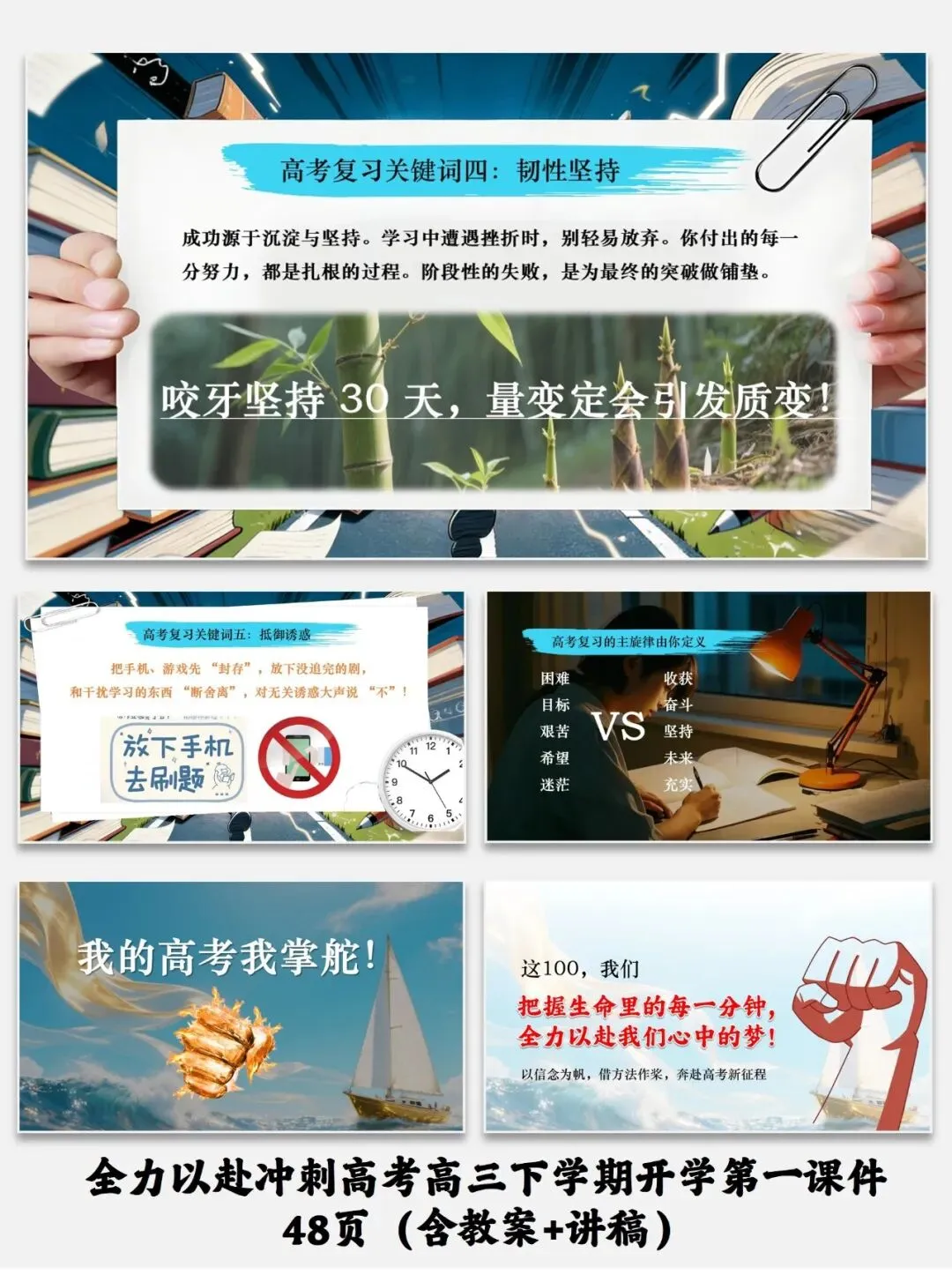 紧扣高三备考需求,从收心调整、锚定梦想、突破瓶颈、梳理重点四维度设计,助力学生高效冲刺高考。全力以赴冲刺高考高三下学期开学第一课件48页(含教案+讲稿)