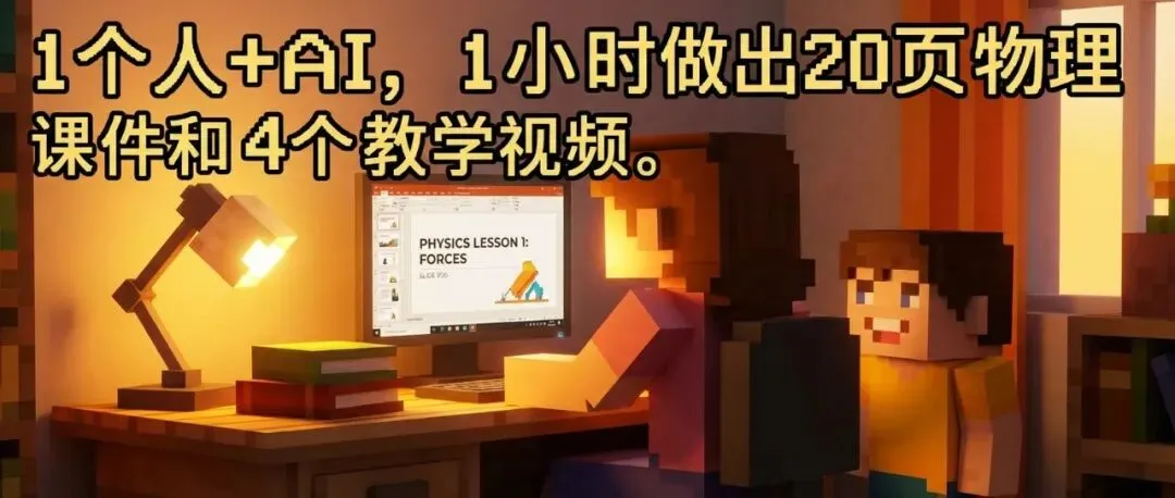 • 读教材、写教案:把PDF变成1800行结构化教学内容• 审核教案:扮演物理老师,找出4处表述问题• 写PPT脚本:3个风格的写手同时创作,每份4万字• 生成PPT图片:20页「我的世界」风格的视觉呈现• 加水印、配语音、组装视频:全自动化处理