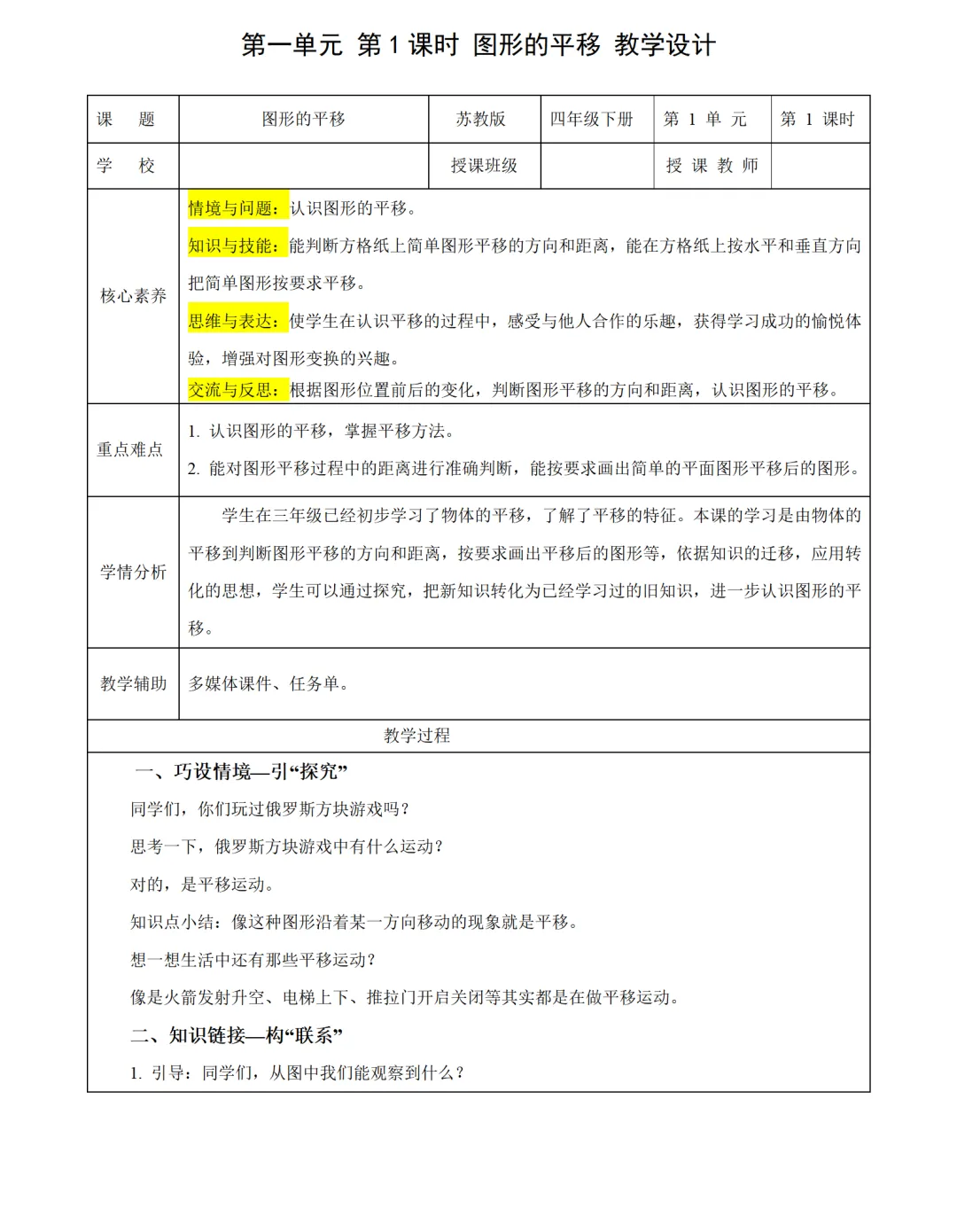 2025苏教版数学四年级下册核心素养教案