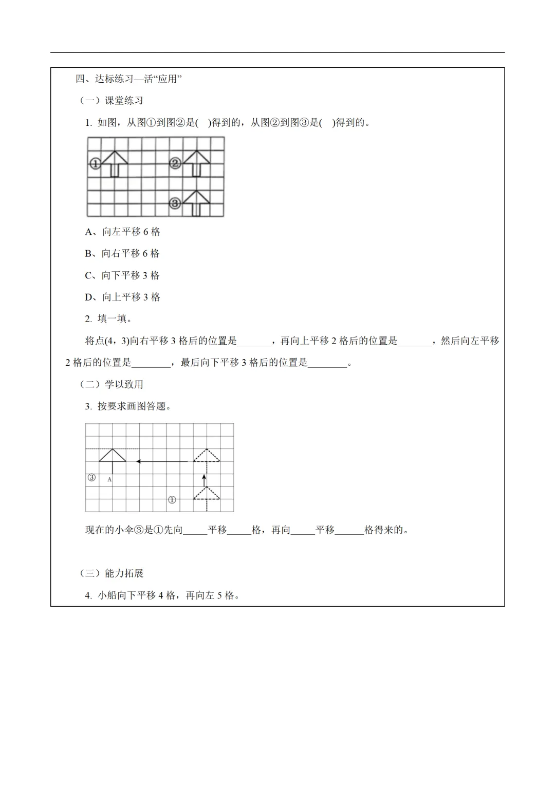 2025苏教版数学四年级下册学习任务单