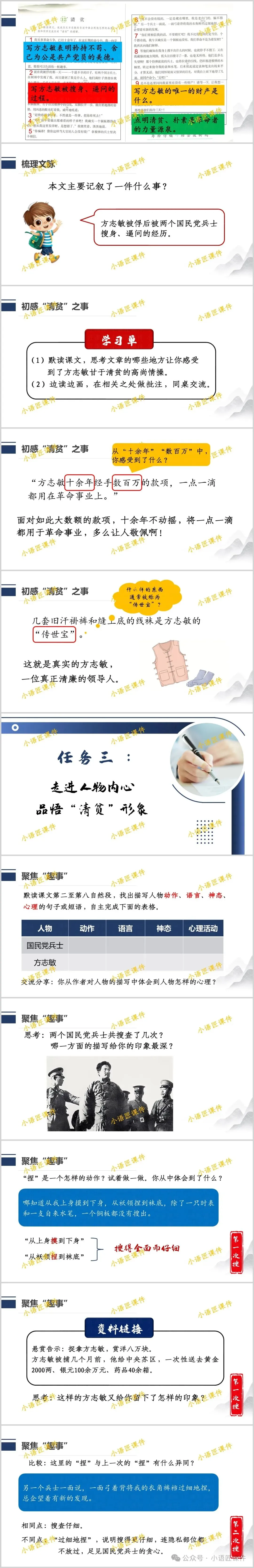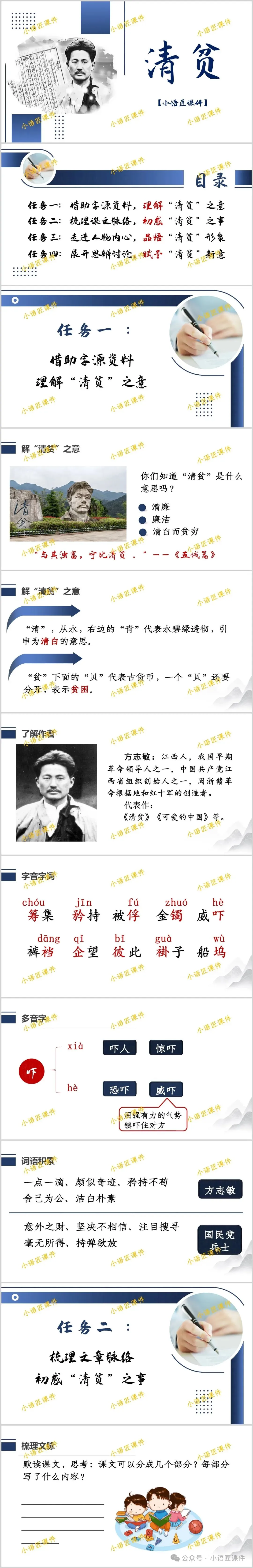 今天给大家分享部编版五年级下册课文《清贫》的独家课件。