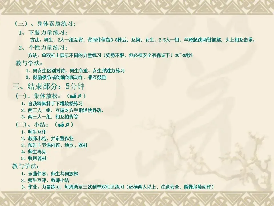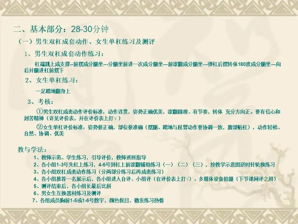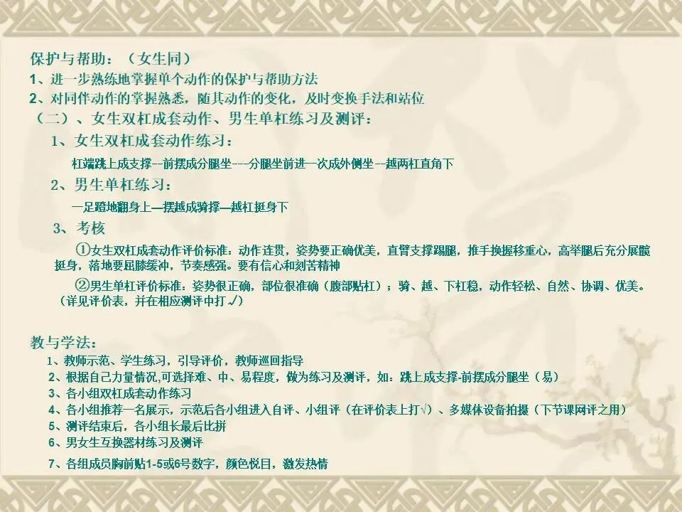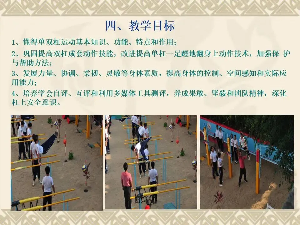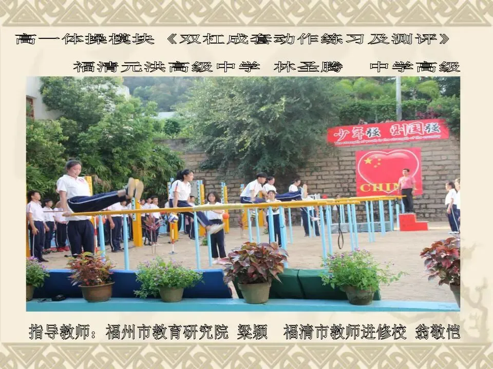 >双杠成套动作练习及测评PPT教学课件