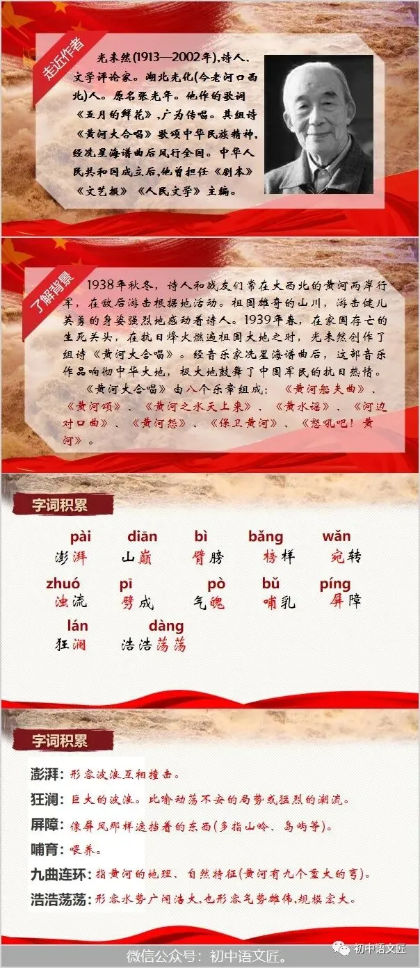 以上便是部编七下《黄河颂》课件的全部内容,大家可下载后根据个人需要修改。