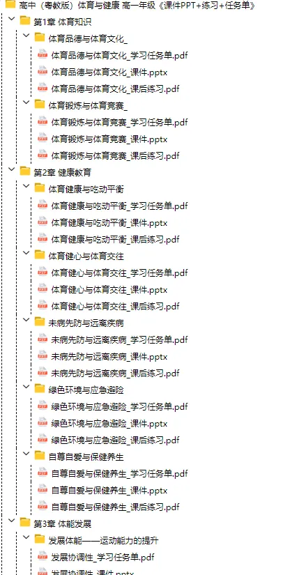 当前位置:首页>课件>高中体育与健康 高一年级 课件PPT+练习+任务单(粤教版),可下载打印!