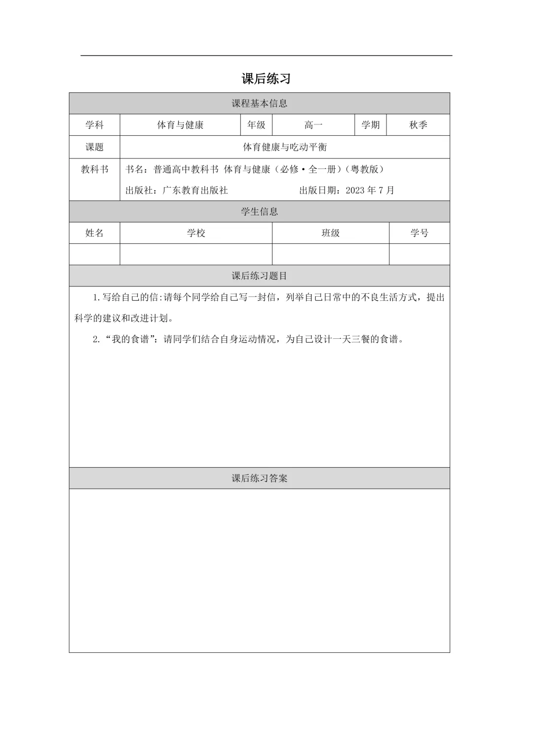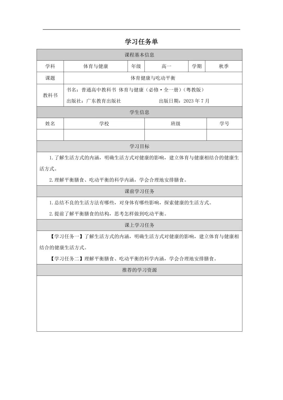 高中体育与健康 高一年级 课件PPT+练习+任务单(粤教版),可下载打印!