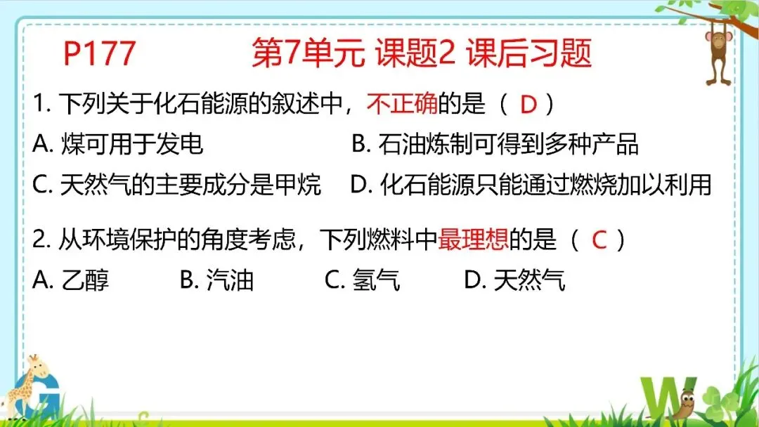 >【希沃课件】人教版九年级化学第7单元课后习题与复习提高教学欣赏!
