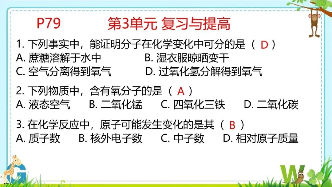 >【希沃课件】人教版九年级化学第3单元课后习题与复习提高教学欣赏!