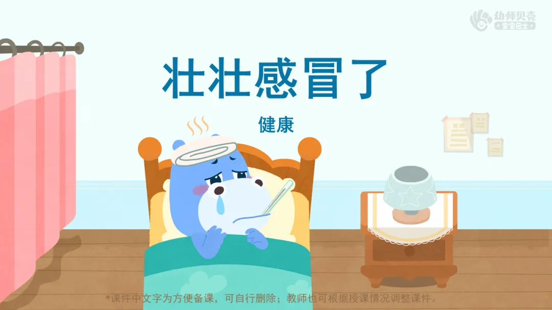 l课件准备:《壮壮感冒了》故事音频及图片;《预防感冒》动画视频。