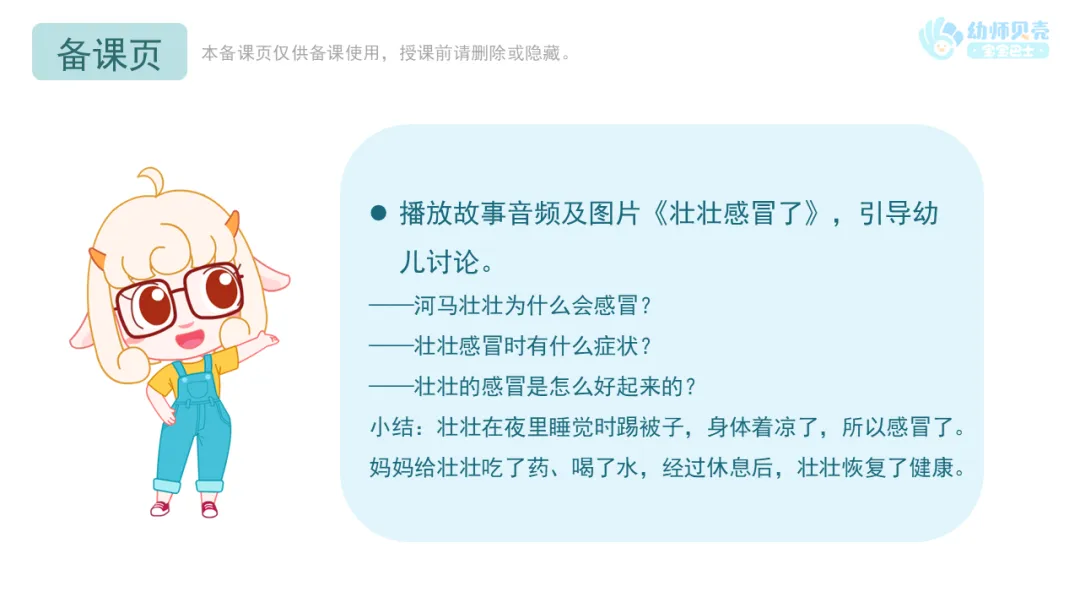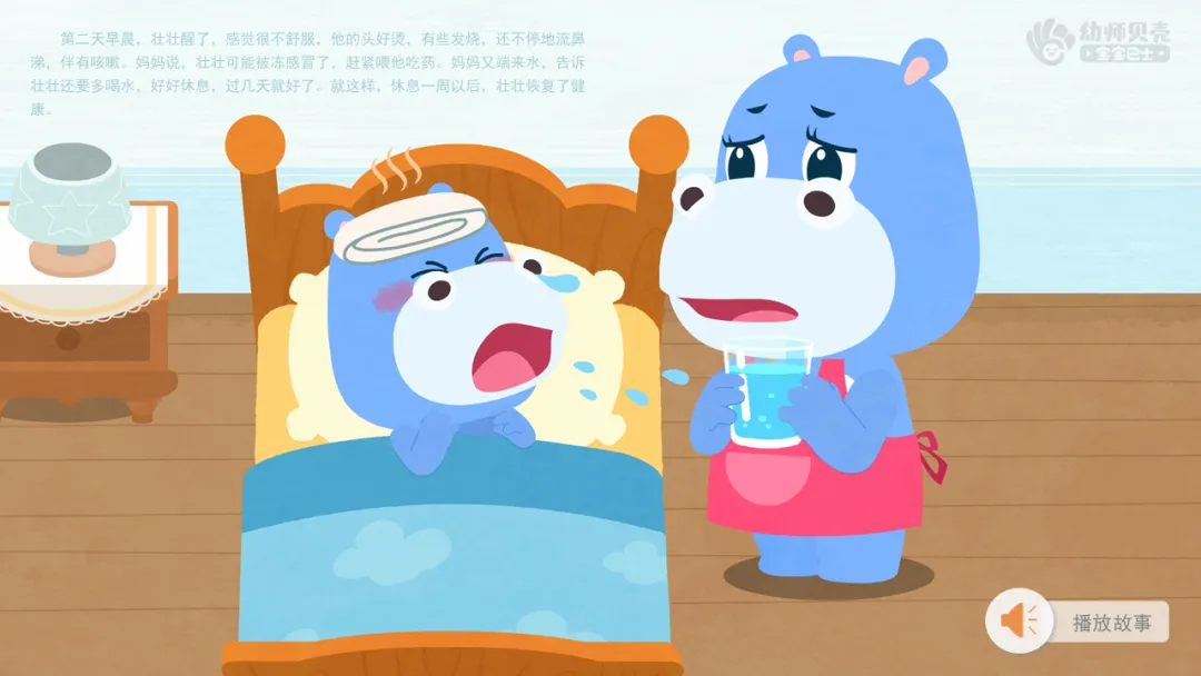 l播放故事音频及图片《壮壮感冒了》,引导幼儿讨论。
