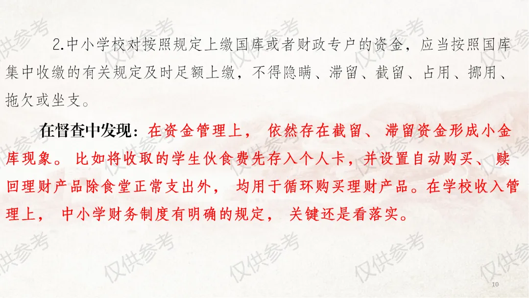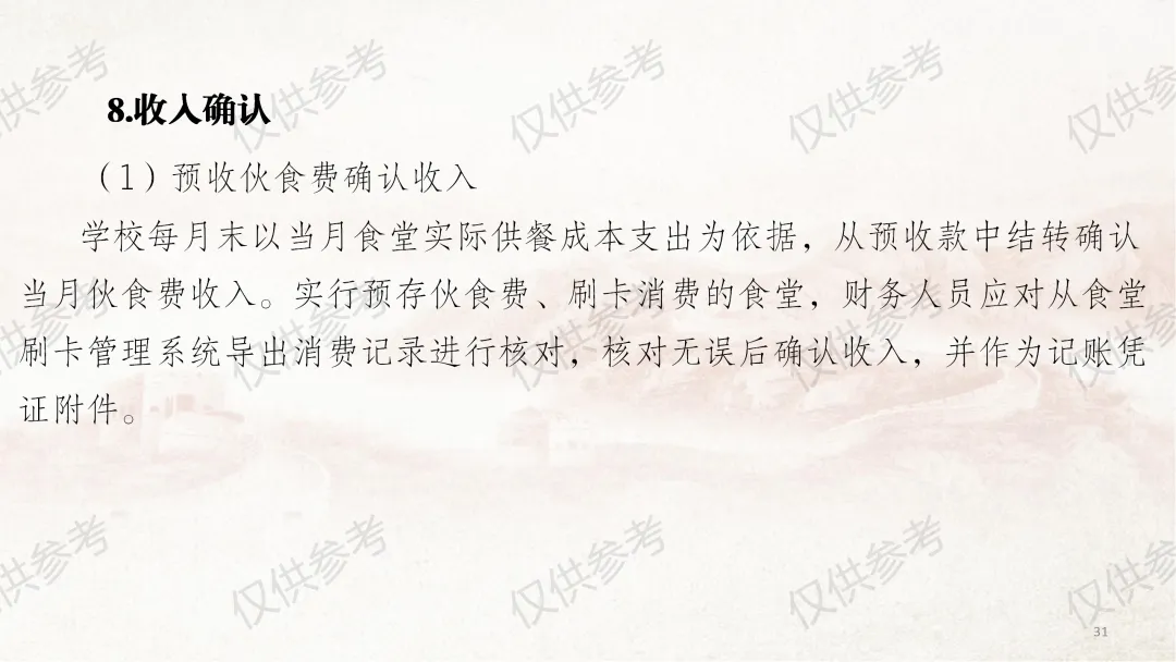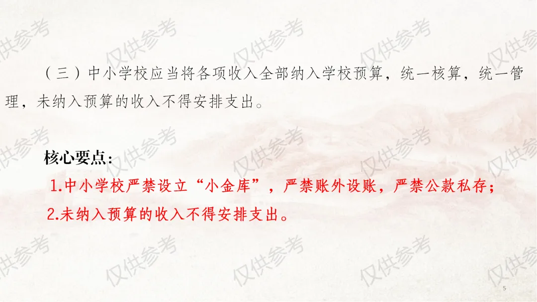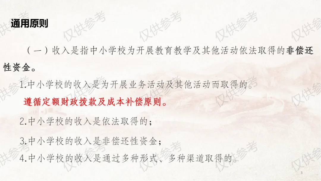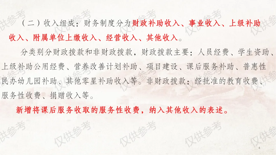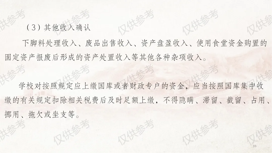 这几天因外出事务,未能及时更新课件,在此向各位致歉。今天为大家带来《中小学校财务制度及膳食经费管理》系列图片课件第四部分—收入管理,本部分共计33张图片。