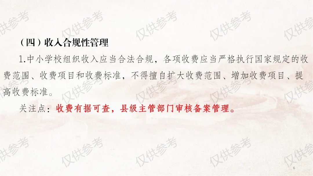本章内容重点为中小学校坚持多渠道筹措教育经费、依法合规组织学校收入,提供一些实操参考与规范指引。