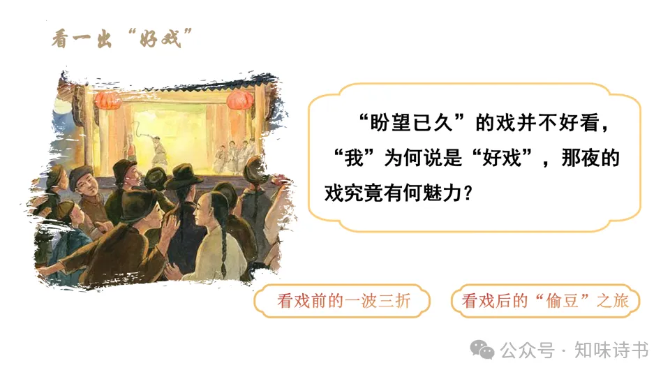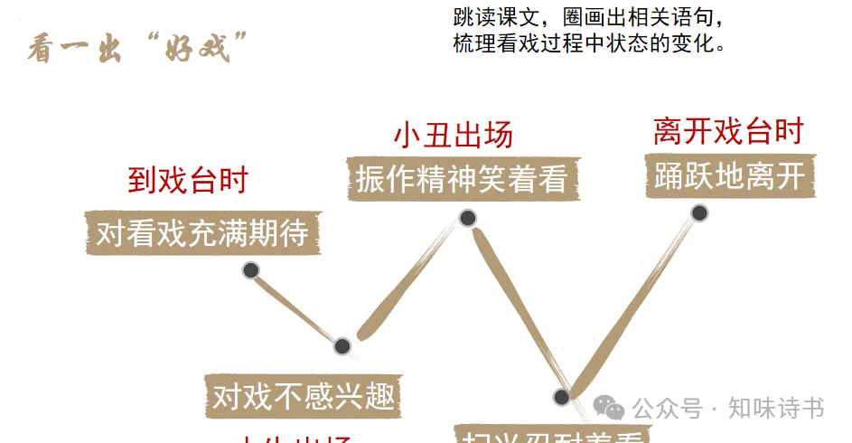 那夜的戏真的好看吗?跳读课文,圈画出相关语句,梳理看戏过程中状态的变化。