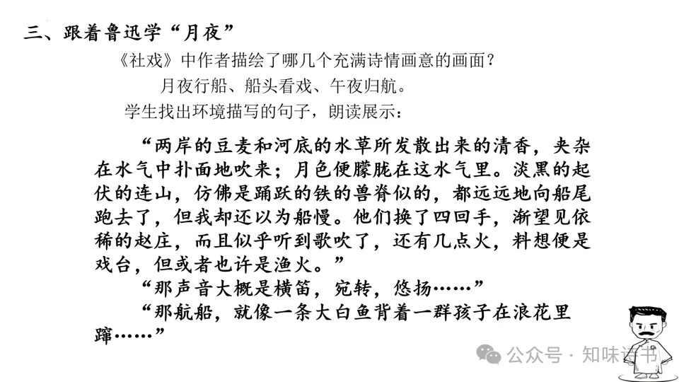 曾经的童年,因为它的永不再来而愈发美好!纵是名角的戏,美味的豆又怎能与那夜的比呢?在那一夜江南水乡特有的优美风光,在那一群平等善良无拘无束的少年玩伴,在那一方民风淳朴自由和谐的平桥乐土,在那一段温暖快乐、自由自在的童年时光!希望我们每一个人都能拥有像迅哥儿这样的平桥记忆,都能作为最青春的生命坐标去创造去怀想。
