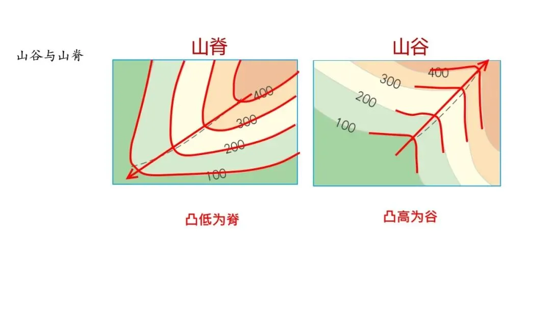 凸高为谷;凸低为脊