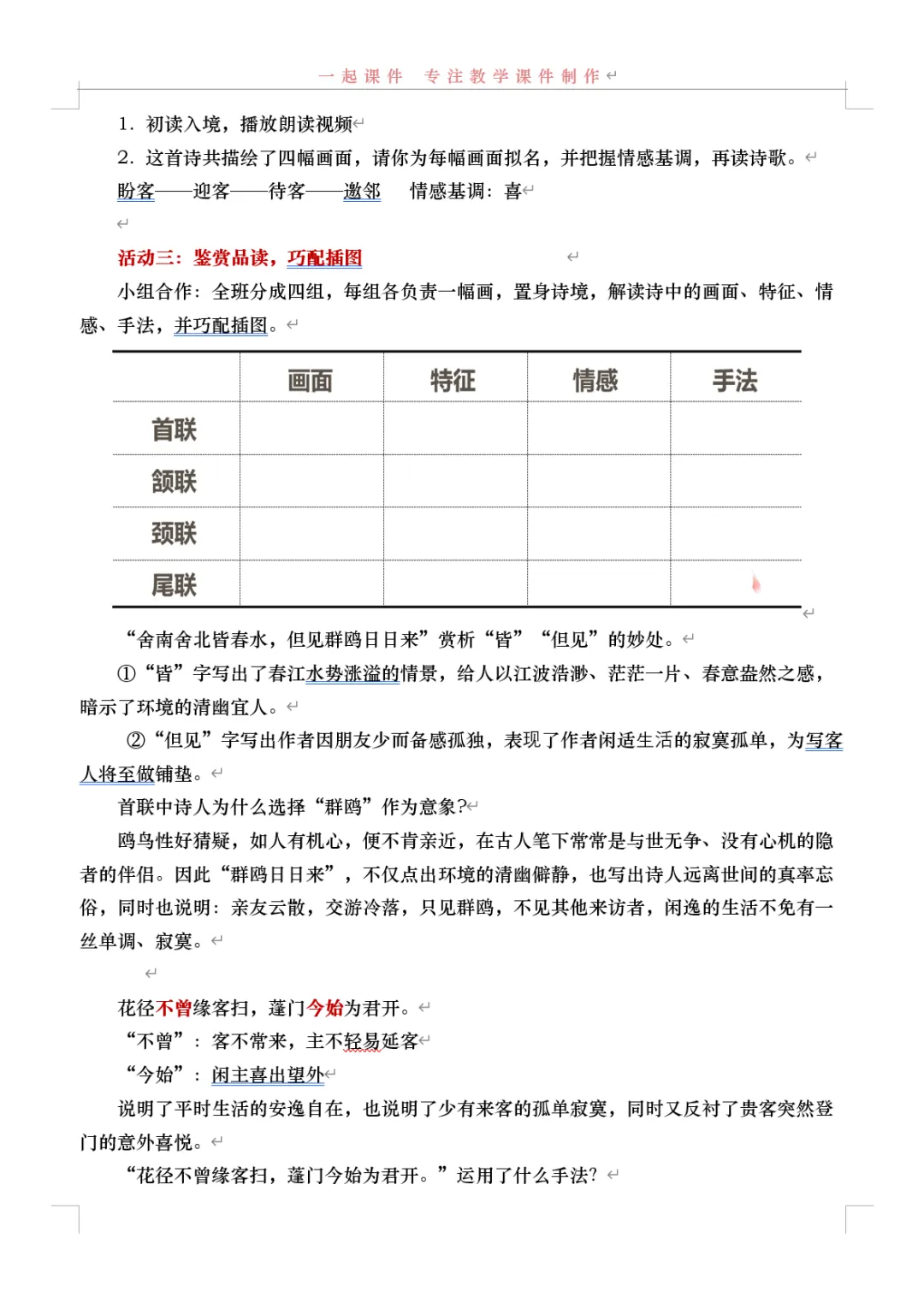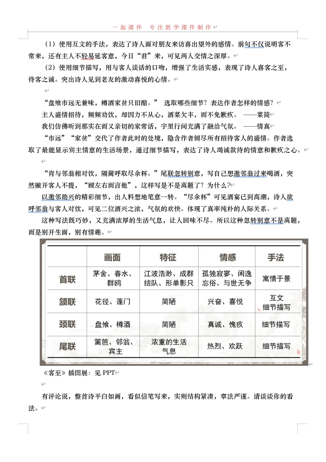 【一起语文选择性必修下】|《客至》:课件+教学设计