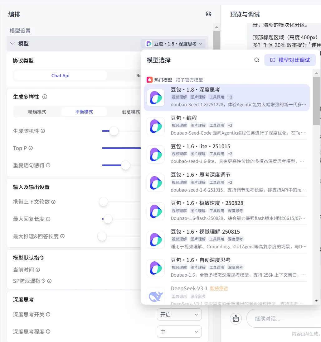 ◦ 对话预览与调试技巧