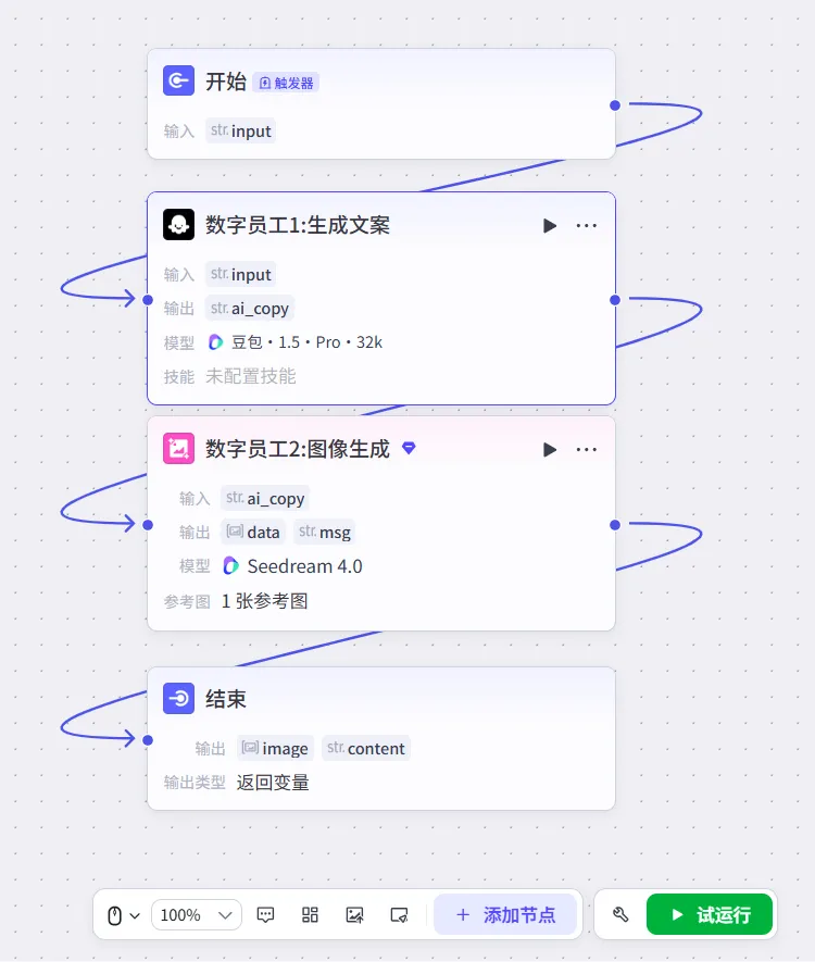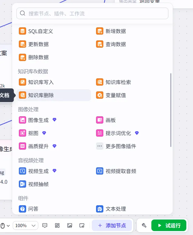 ◦ 功能节点(插件调用、API请求)
