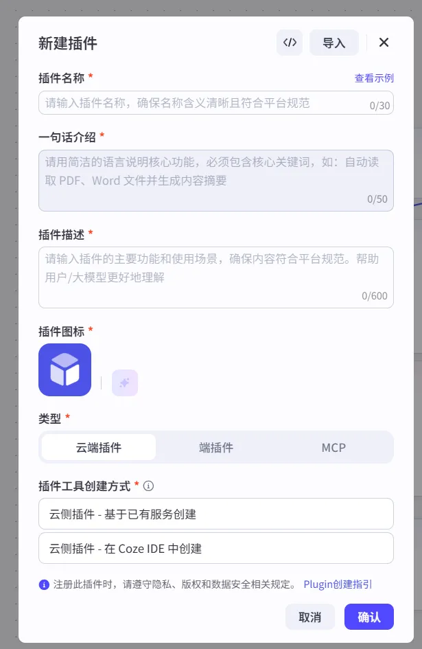 图1:扣子平台智能体创建界面