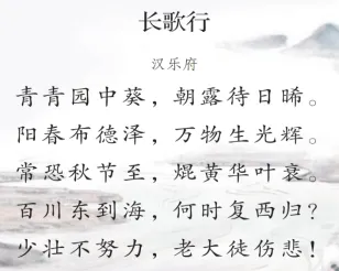 5.体会不同词语表达相同意思的好处,了解习俗的寓意,提高书写速度,积累古诗《长歌行》。