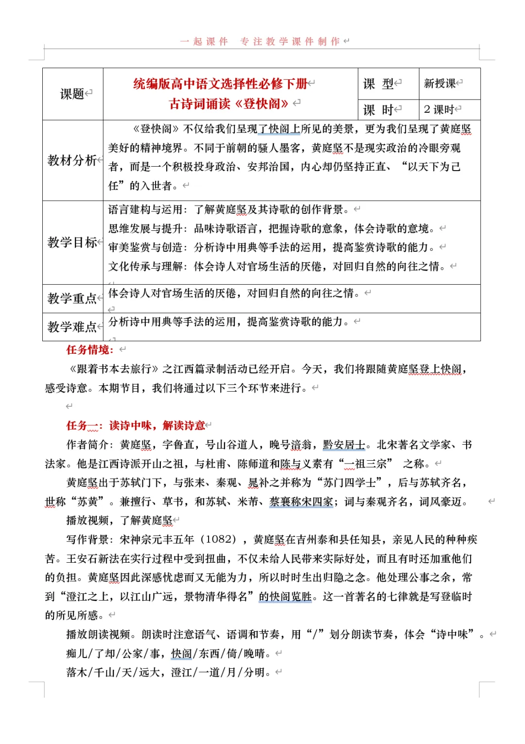【一起语文选择性必修下】|《登快阁》:课件+教学设计