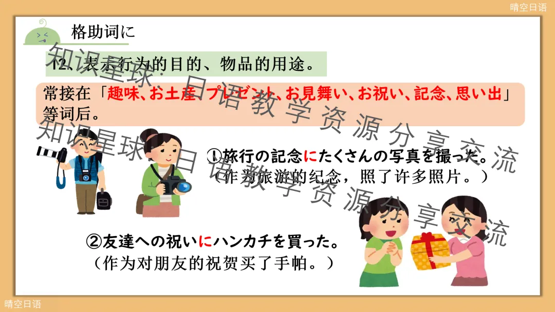 (这里仅展示部分资料,总共六十多页PPT,如需完整无水印版本,加入“知识星球:日语教学资源分享与交流”即可下载。加入星球的方式可参照文末说明。)
