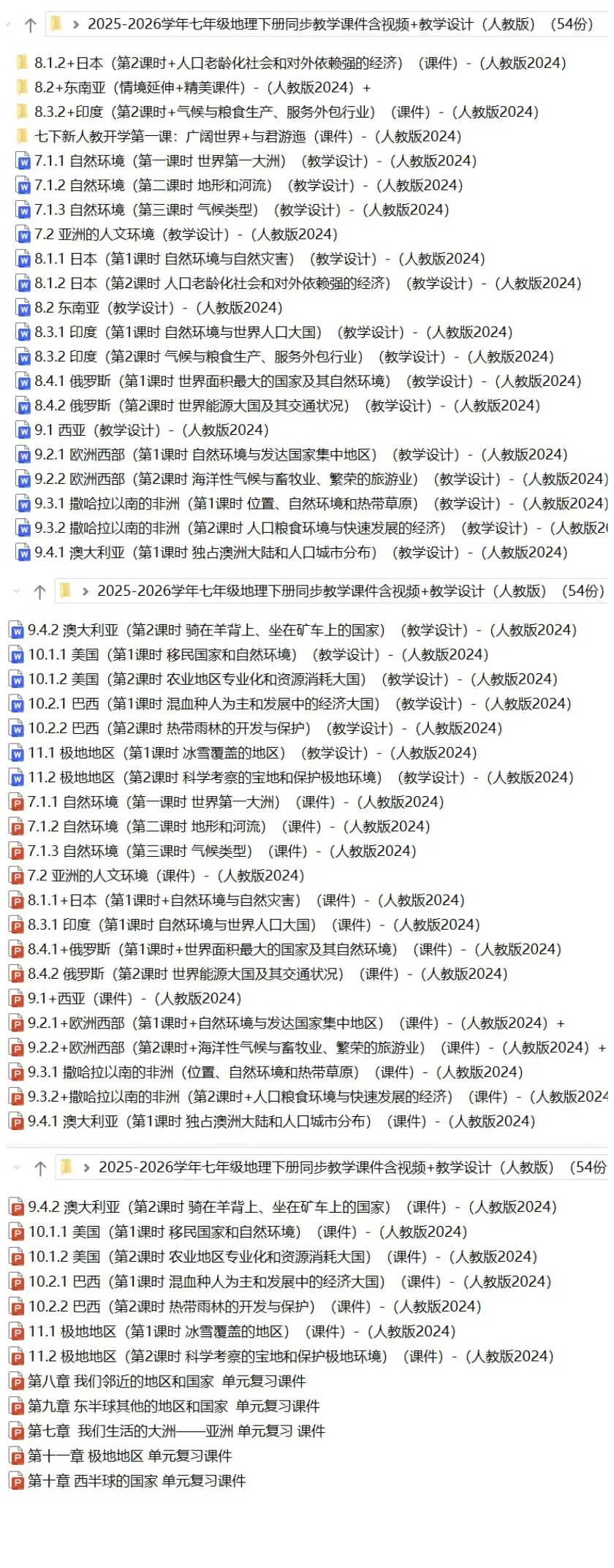 >2026年七下地理人教版:同步教学课件+教学设计54份文档 | 完整电子版文档可下载打印