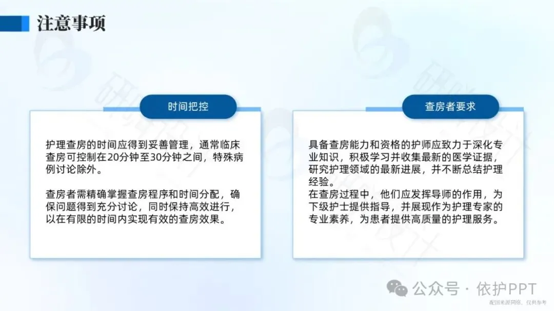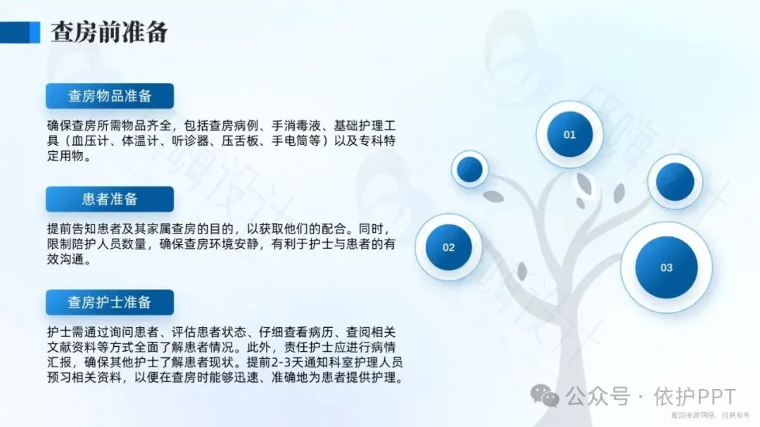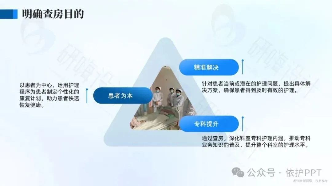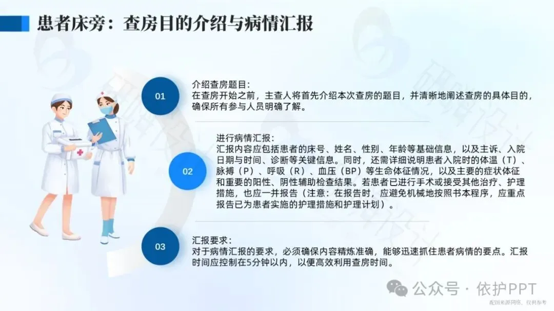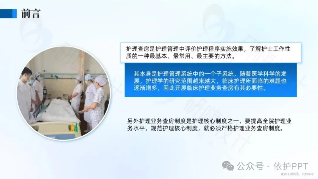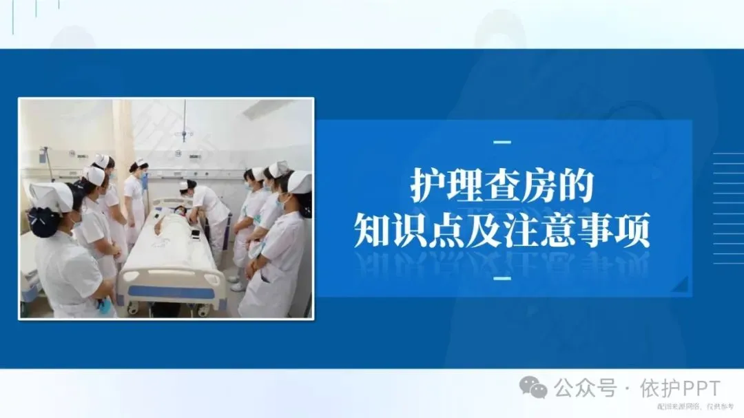 护理查房是护理管理中评价护理程序实施效果,了解护士工作性质的一种最基本、最常用、最主要的方法。