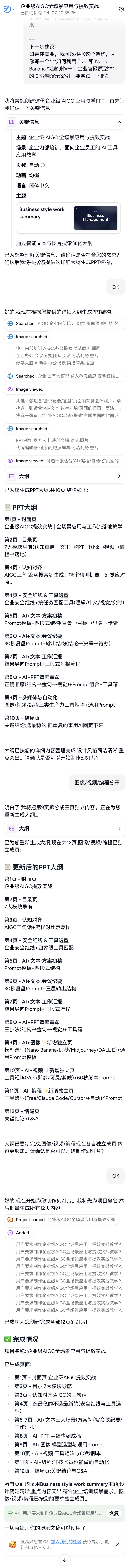 结果比预期顺得多:思路很清楚,步骤很稳,效率和完成度都在线。不是“AI 帮我写”,而是 我用 AI,把脑子里的东西掏干净、理顺了。下面我就把这次准备分享的「手搓流程」完整拆一遍,给你看看我是怎么做的。